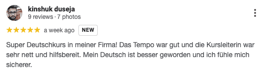 „Der Einzelunterricht war perfekt auf mich zugeschnitten. Endlich habe ich die Sicherheit, mich im Alltag auf Deutsch zu verständigen.“