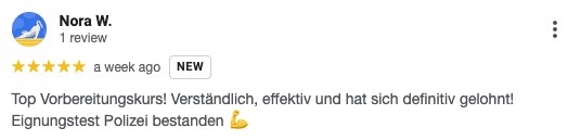 „Die Vorbereitung auf die Polizeiprüfung war top strukturiert. Ich habe mich sicher gefühlt und die Aufnahme geschafft.“