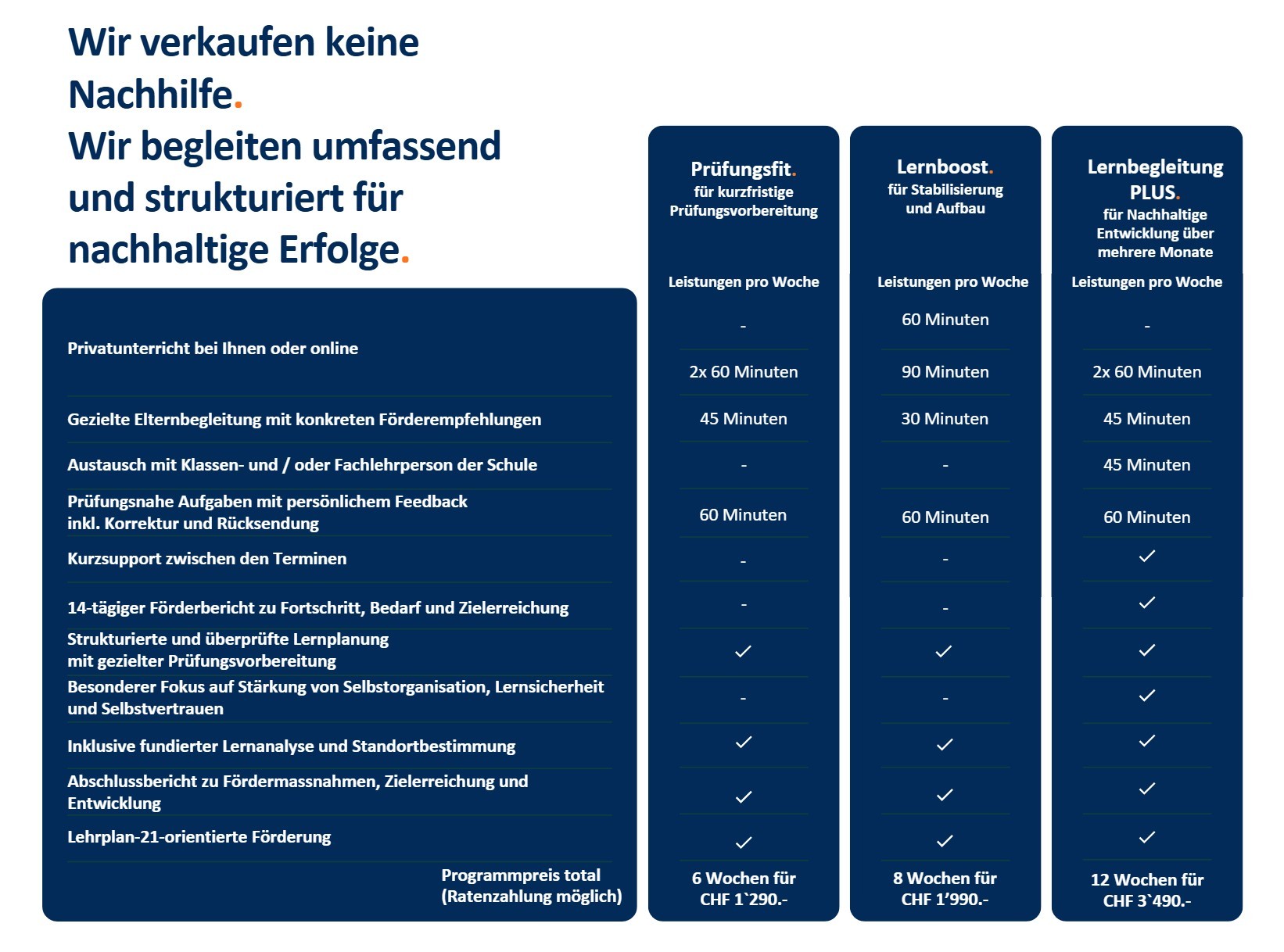 Unsere Lernpakete für nachhaltige Lernbegleitung. Unsere Lektionen von 60 Minuten